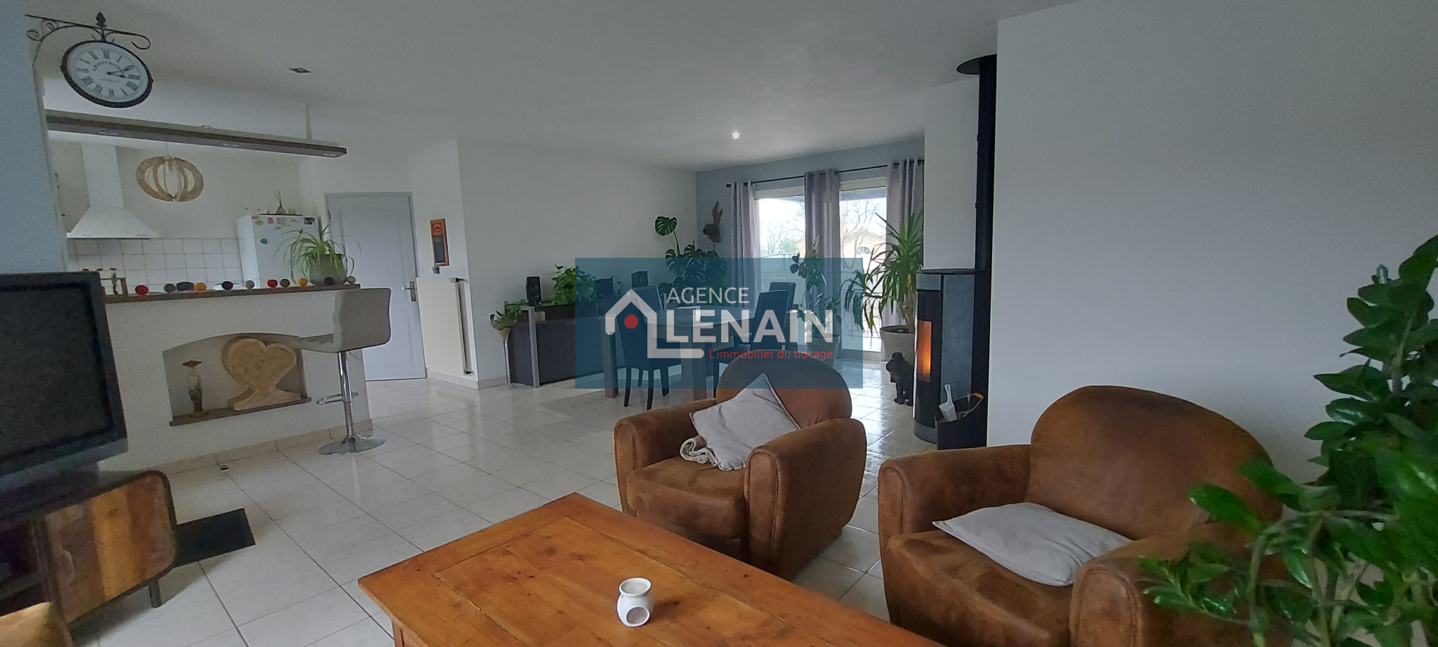 MAISON de PLAIN PIED de 101.25 m² sur 1 533 m² de terrain attenant, comprenant : Salon/séjour donnant sur 1 terrasse (poêle à granules), cuisine aménagée et équipée, buanderie,