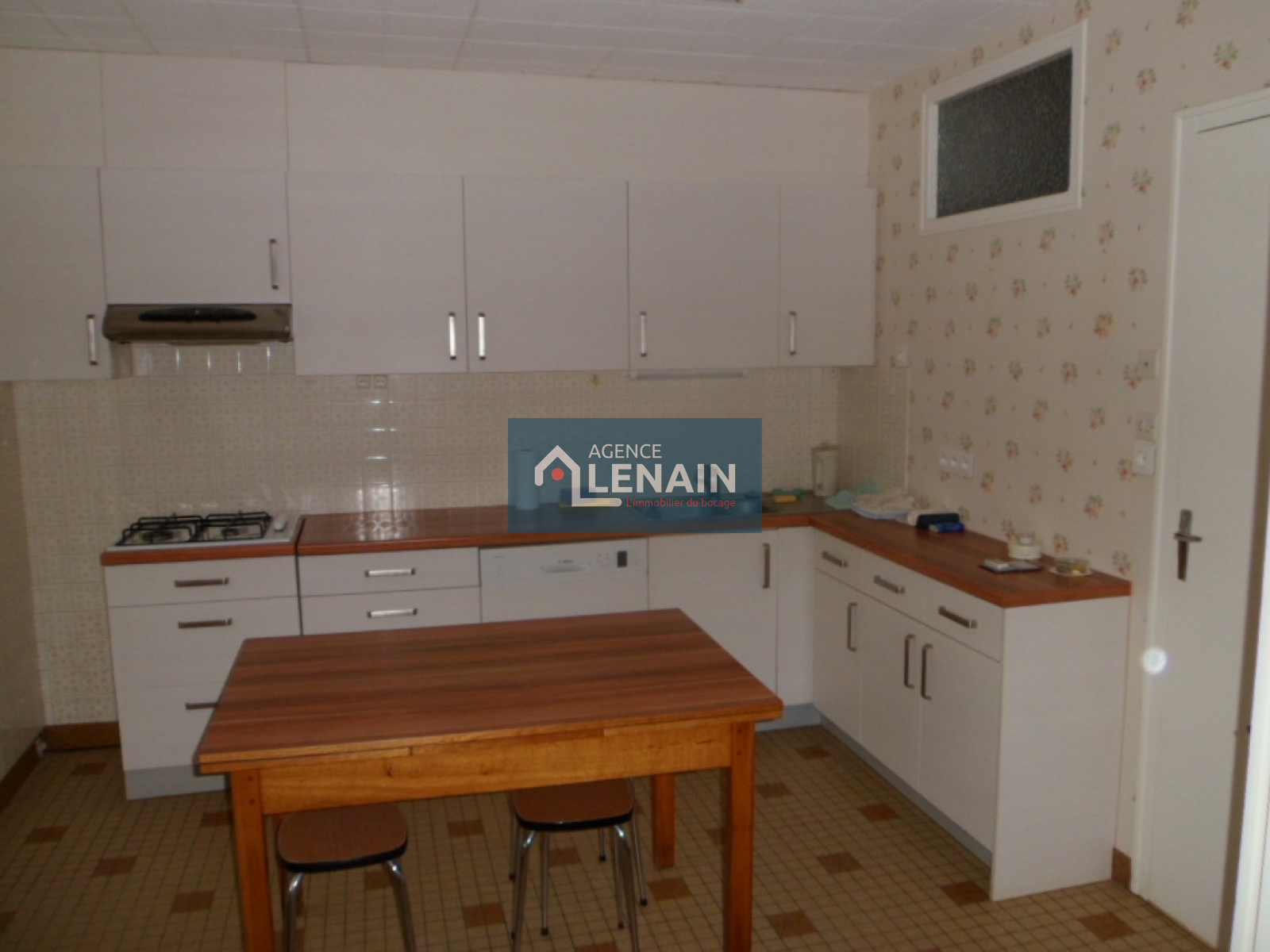 A l'étage, séjour, salon aves poele à bois, cuine équipée, salle d'eau et wc.